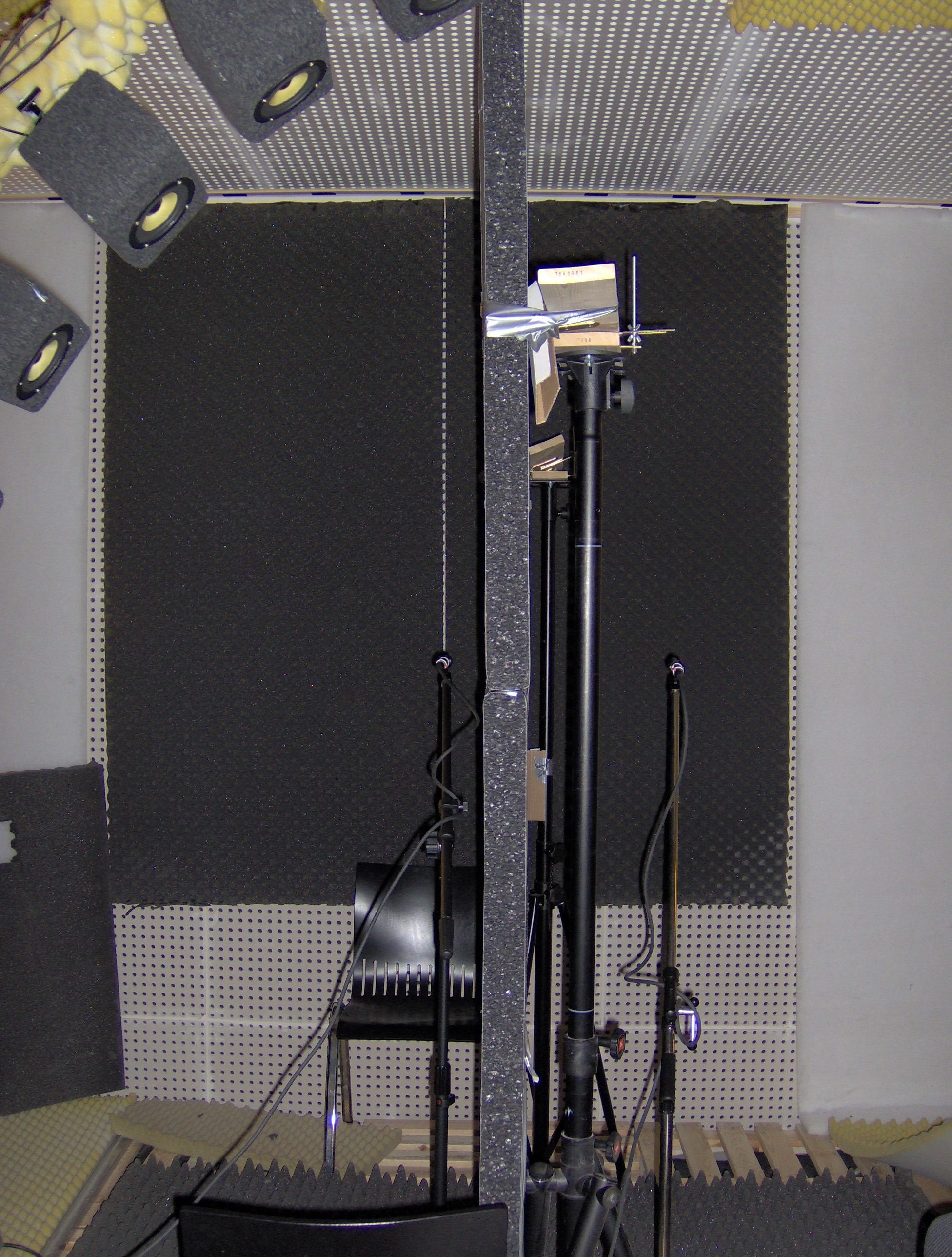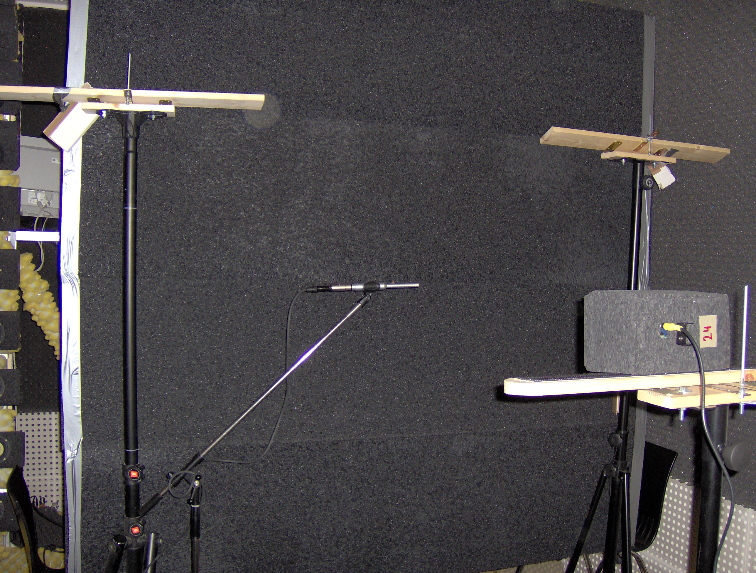 3: Messaufbau von der Seite der Anregung. Rechts: Schallquelle,